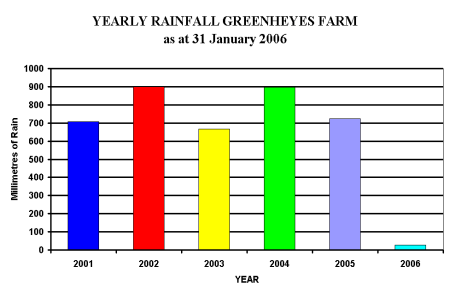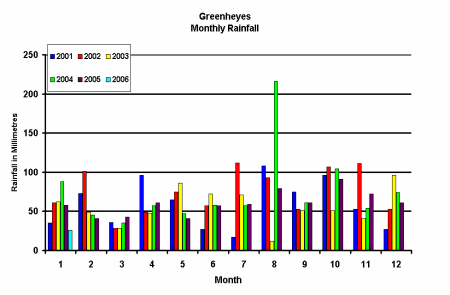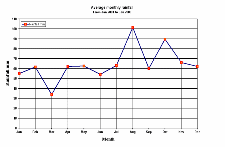 On an annual note a late burst of damp weather saw 2005 with 724mm of rain nudge 2001 out of 3rd place for wettest year. 2nd goes to 2004 with 896mm, while 2002 takes first place for the wettest year with 900mm. Well, thats it for this month. Why not start your own weather station and see how you data matches ours. More next month Phil