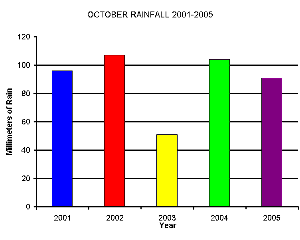 To date October averages 90 millimeters of rain, which discounting the freakish downfall of August 2004 makes it our wettest month of the year annually. If trends continue that means it can only get drier from now on :-)