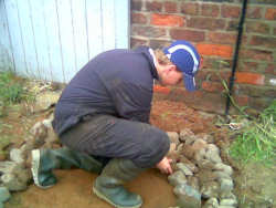 The cobble stones were then carefully placed into position to be reset.