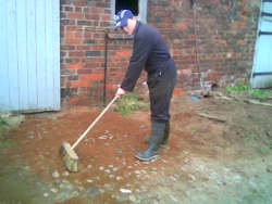 Finally brushing them over to remove any excess sand. Give this patch a month or two of use and you will not be able to see where the hole was dug unlike if it had been in a concrete or tarmac yard.