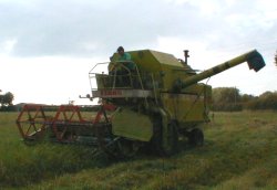 has a capacity of 2 tonnes in its tank. These pictures show the combine working and empting into our grain trailer. |