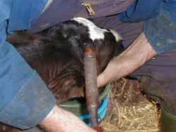 Most breeds of cattle have horns, in the UK most are De-Horned at around 6 weeks of age, on this page we will show you how this is done. It is done mostly in the intrest of safety