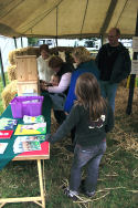 It was the beginning of a busy day for him which is partially his own fault for being so entertaining. we were invited by local NFU Here they are in the adjoining NFU tent dealing with another satisfied customer. During the day they were to be kept as busy as Phil.