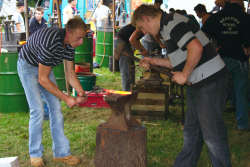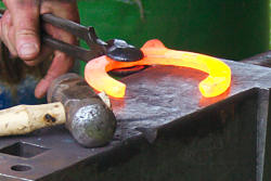 The answer, shown on the right is a horse shoe. At least one in the making. One of the competitions held at the fair is for Farriers.