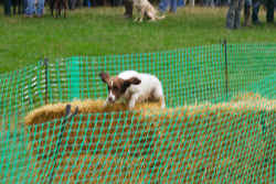 While on the right, a spaniel undertakes a different obstacle course to retrieve its dummy bag. With some of the younger and less experienced dogs these competitions can be quite amusing to watch.