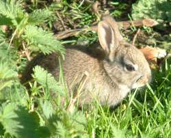 He had stood so still while contemplating where to best position himself to observe the Buzzard nest that the youg rabbits had not realised he was there. As a result here is his version of Watership Down.