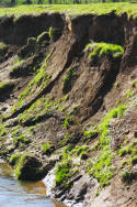 In this photograph part of the bank can be seen slumping into the river. This is at the spot where I have discovered some archaeological remains which are currently under investigation. As more of the bank is eroded more remains are exposed and sadly eventually destroyed. I have decided to start a new section documenting what is found and hope to have it up on the web in the near future.