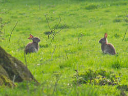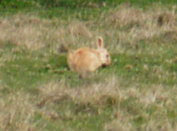 I am sure that he would have gotten a closer photograph had it not been for a moorhen that was out of sight at the base of the tree. He surprised it and its flight startled the rabbits much to his annoyance.