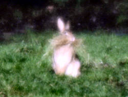 This rabbit has a mouthful of material which I assume it was going to use for bedding in its burrow. It was a shame that it was blurred I think it would have made a good photo otherwise Regards Webby.