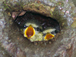 The photo on the left shows one of the parents just returning to the nest to feed its young, while the photograph on the right shows a pair of hungry mouths eager to receive whatever mum and dad bring them.