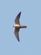 High above flew one of the fastest hunters in our sky, a Peregrine Falcon. This hunter of the sky attacks its chosen target with a very high speed dive which can reach speeds of up to 180mph (290kph) striking its victim a blow with its talons as it passes.