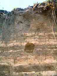 For some idea of the height scale the person you can see above the bank is Andrew's son 7yr old James. For safety he is not standing on the edge, but 3ft to 4 ft (1m+) back, so there is a little distortion in the comparison scale. The height of the bank is about 8ft to 9ft (2.4m / 2.7m)