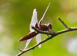 In this photograph two rooks "escort" a Buzzard out of their airspace. although I think in this case "harass" would be a better term to use. The alarm calls of these and other birds provide good clues that preadators such as the buzzard are around. So use you ears as well as your eyes. On a smaller scale here are two other predators to be found at Greenheyes. This time down by the river.