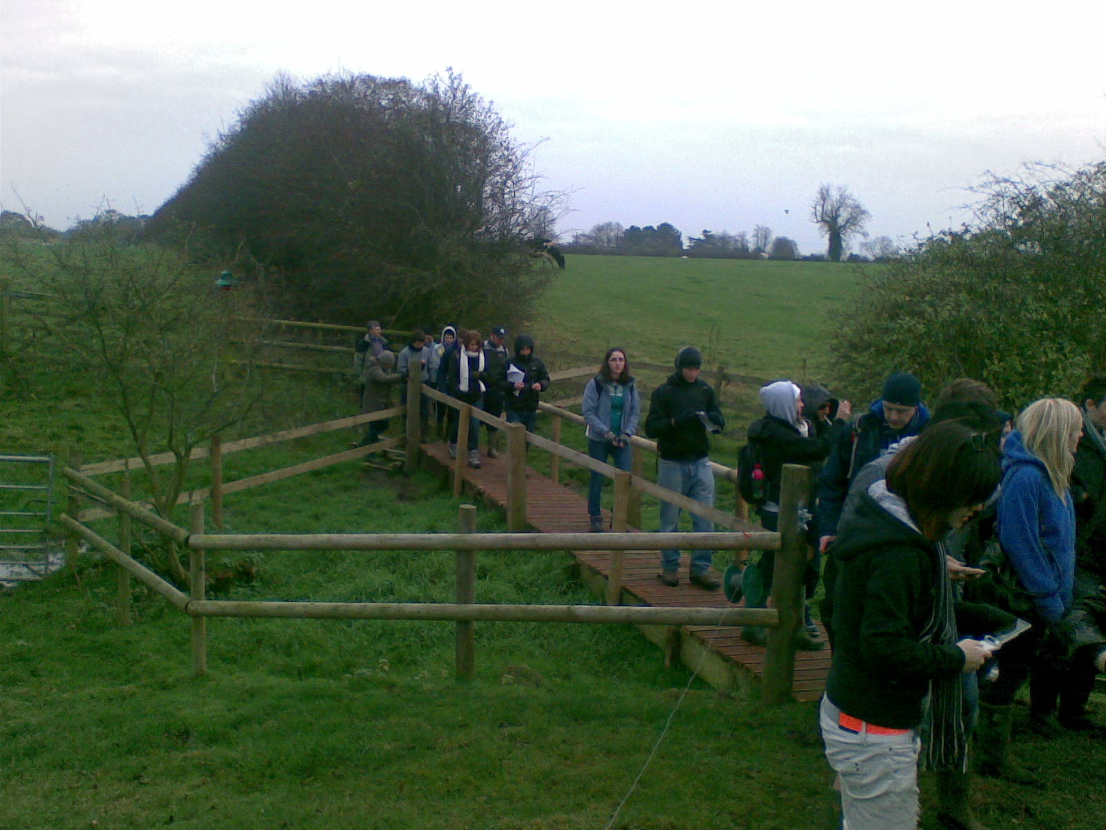 The winter barley is all poking through and next move for that will be a spray of weedkiller and some slug pellets as the weather has now turned wetter just suiting slugs. Enter Les the spraying contractor who sprayed the barley with a spray that should control the weeds during the winter and discourage the slugs. Manchester University made their annual visit and were first to fully use our completed footbridge as the picture shows. Our local shoot also seem happy with it as well