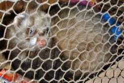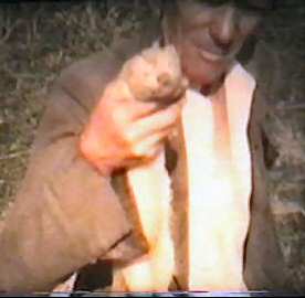 A common way then would be to use ferrets pictured here feeding and again with their owner. The aim is put the ferret into the rabbit hole and it will scare/chase the rabbits out. They are then either shot, netted or caught by dogs.
