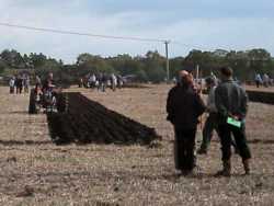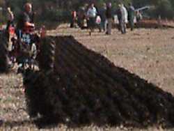 Here using a tractor from the mid twentieth century a contestant ploughs his allocated strip of land. from the enlargement on the right it is possible to get some idea has to how straight the furrows are. The judges have to have a very keen eye, and are very critical.