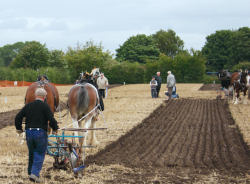 Today it would be a rare sight to see horses actually working in this capacity outside of such events as these in the UK. Still it is worth remembering that they were still a common sight up to the middle of the twentieth century. The original use for these horses was not so pleasant, they were bred for war. The aim in a ploughing competition is to prove that you can plough the neatest straightest furrow. The photographs below compare the three ages of ploughing shown above.