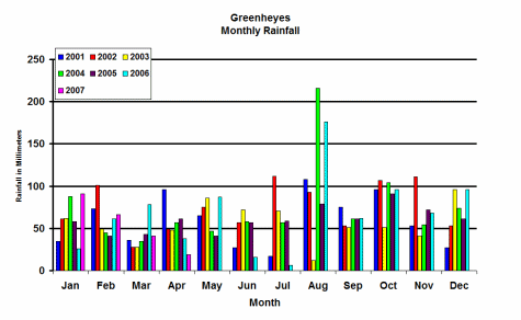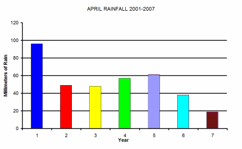 Our next graph shows the total yearly rainfall up to the end of April 2007