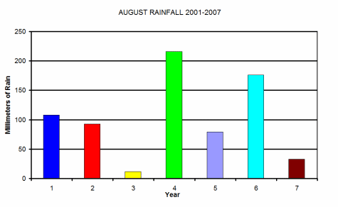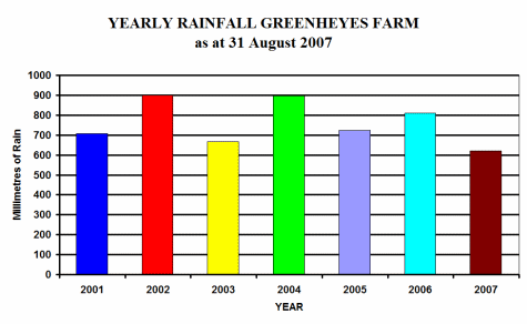 Well we finally have had a reasonably dry month with only 33mm. This was actually the second driest august since we started to record rainfall here at greenheyes