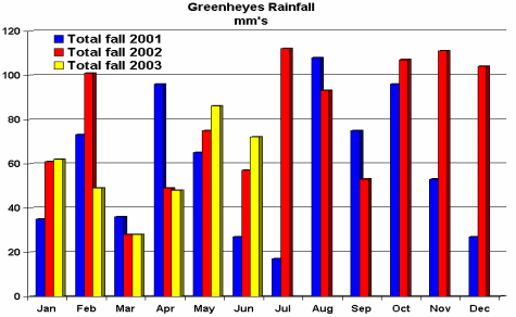 being the coolest at 8.6 deg Centigrade. It rained for the first 5 days of June giving 49mm and then it rained on the last 2 days with a further 23mm falling (22mm on the 29th) to give us a total of 72mm for the month Our wettest June yet.