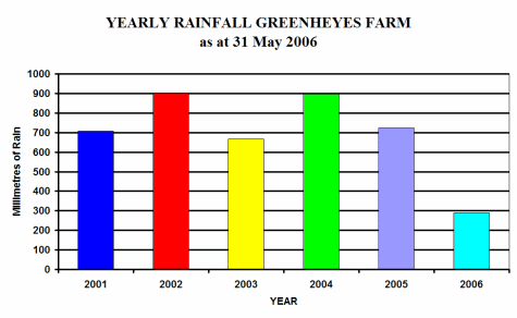 Our next graph shows the total yearly rainfall up to the end of May 2006